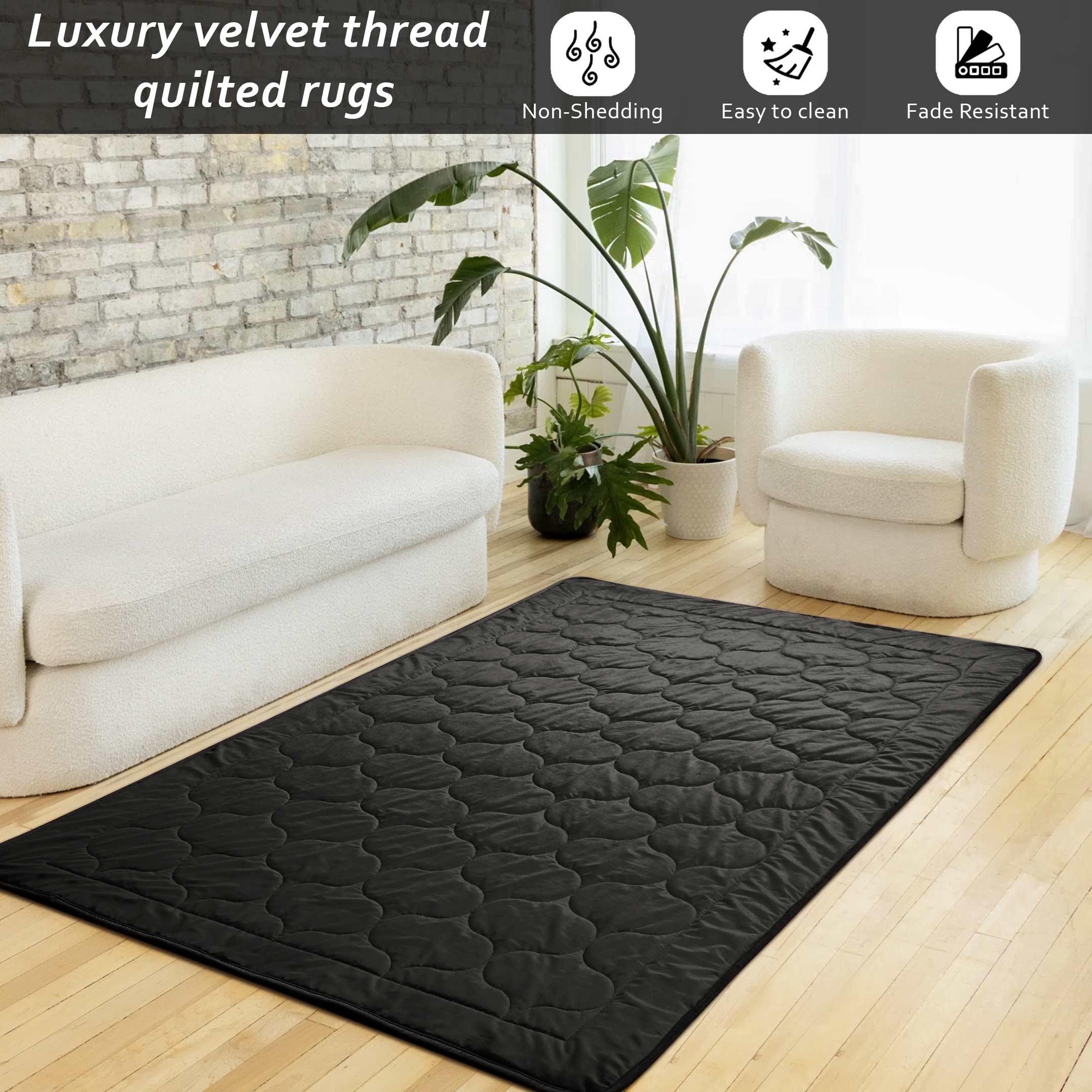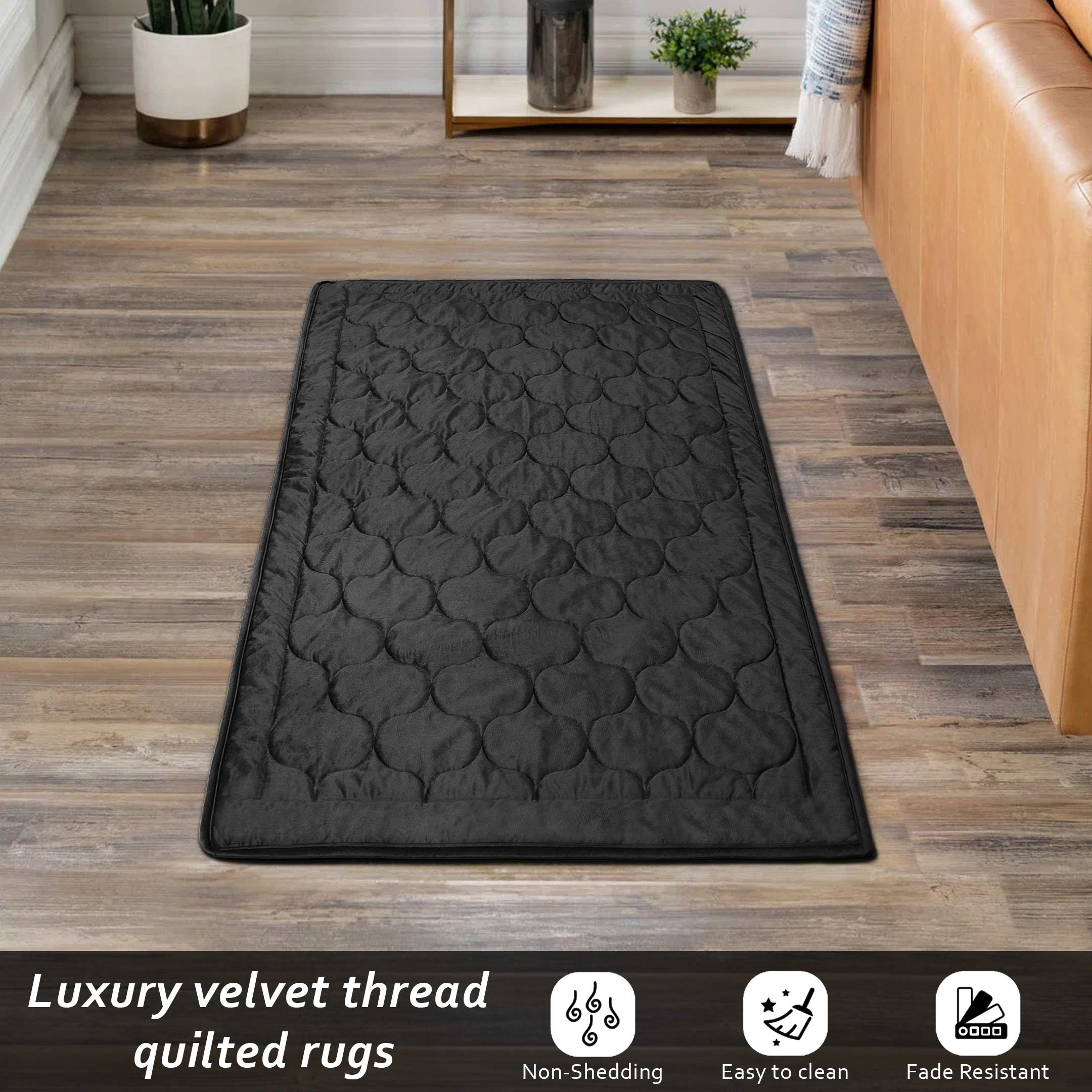 Luxury Crush Velvet Rugs Black
