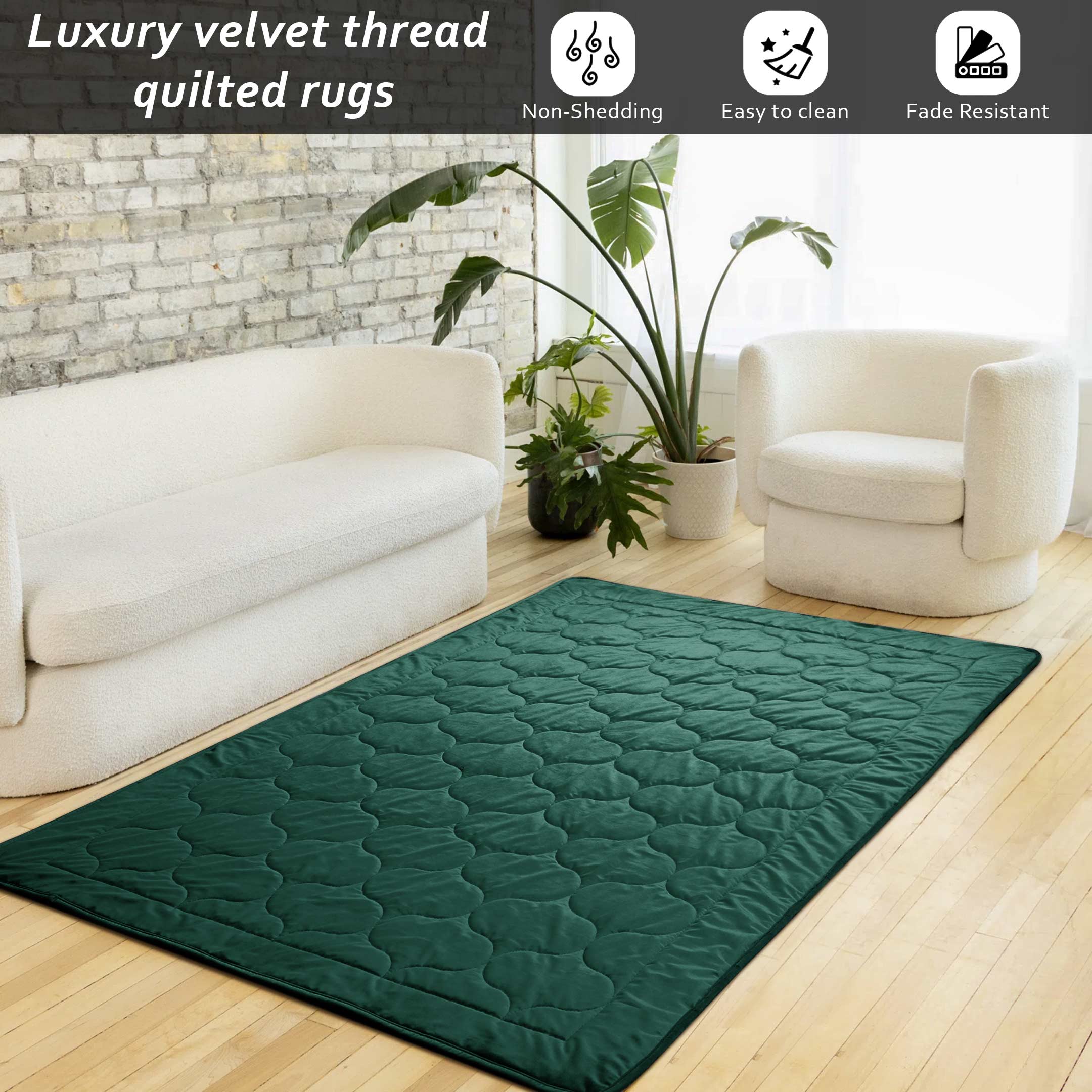 Luxury Crush Velvet Rugs Green